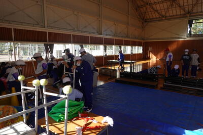 次の日の片付けです。当日は保護者の方々にも片付けのご協力をしていただきました。他喜力あふれる運動会になりました。