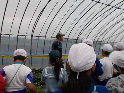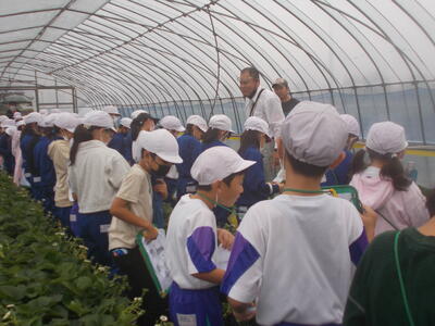 朝は強い雨が降る中でしたが、いちご農家やいちご情報館を見学しました。午後はスーパーマーケットの見学をした後、買い物をしました。
