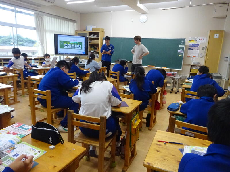今日は、2年生が町探検で中村中学校と中村改善センターに見学に行きました。ボランティアの保護者の方やマイチャレの中学生も一緒に付き添っていっていただきました。