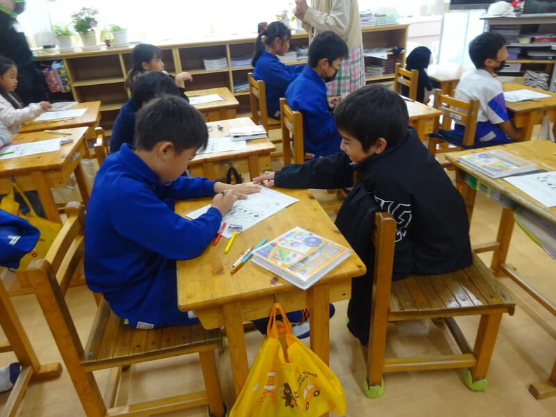 今日は職員研修のため、1年生の研究授業が行われました。「かいがら」の物語の読み取りを行いました。くまの子の気持ちを、一人一人想像し考えたり、友達に伝えたりすることができることができました。