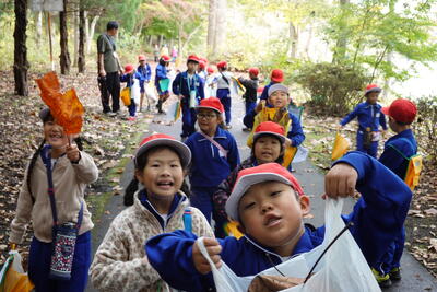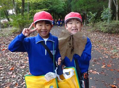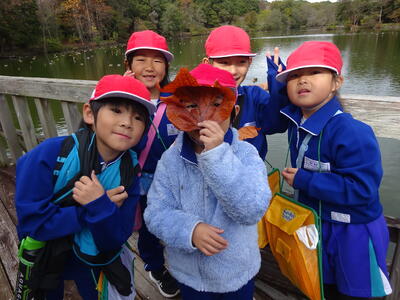 雨上がりの寒い日となりましたが、1年生が井頭公園の秋を探しに行ってきました。色づいた木の葉や木の実を拾って来ました。
