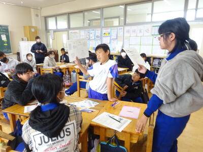 昼休みに、清掃班会議を行いました。2学期になり新しい清掃班の編成がありました。それぞれの清掃場所の班長がこれからの役割を確認し、班長のやるべきすることを再認識していました。