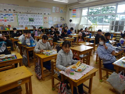6年生の食育では、バランスのよい食事ということで、「リクエスト献立」をグループで考えました。自分たちのこれまでの食生活を振り返り、これから気を付けていこうという意欲が感じられました。今週は給食の残量調査もあります。その後、給食もおいしくいただきました。