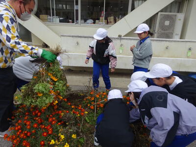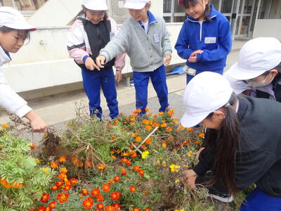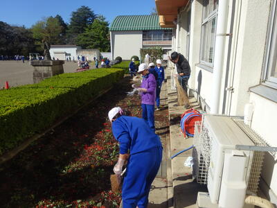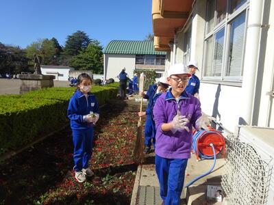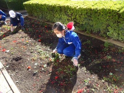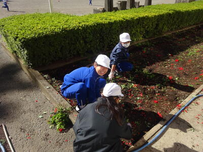 今週は、草花の植え替えのため花壇の整備をしています。各学年、クラスの代表が、進んで作業をしてくれました。