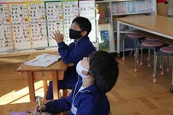 児童主任の話 指で数える様子
