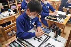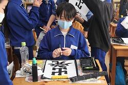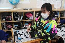 書写は、「曲がり」「反り」に注意しながら「光」の清書を行いました。