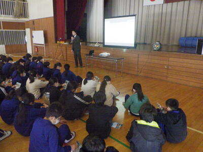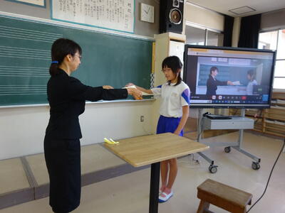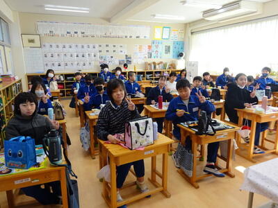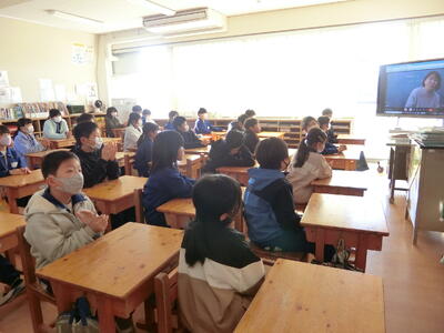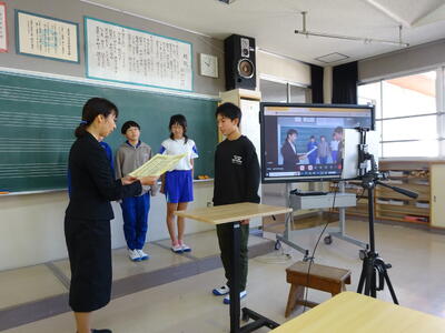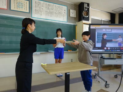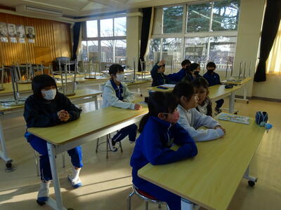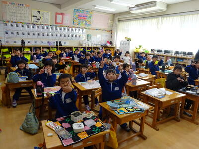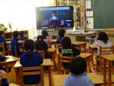 アメリカのグランドーラとオンラインで結び、6年生が異文化について学びました。英語での説明を聞いた後、質問コーナーでも、代表児童が英語で質問をしました。緊張していたようですが、質問が通じた喜びも味わうことができたようです。