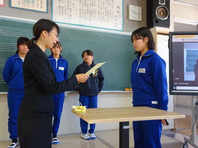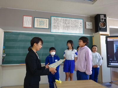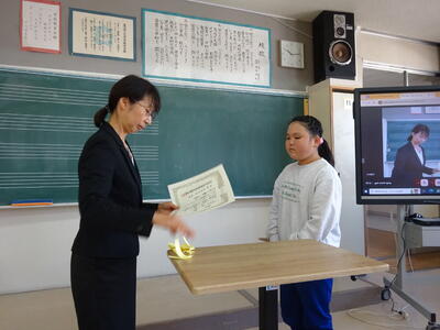 業間に賞状の伝達がありました。芸術の秋のふさわしく、作品展などにたくさん入賞しました。おめでとうございます。