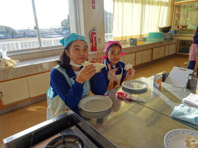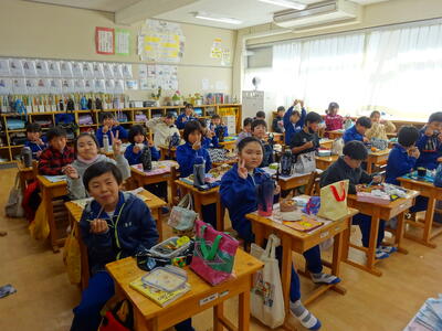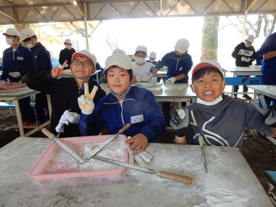 今日から宿泊学習が始まりました。6年生が入所し、勾玉づくり、風鈴づくりをしました。お昼はバイキング給食でした。3泊4日の長丁場ですがみんな元気です。