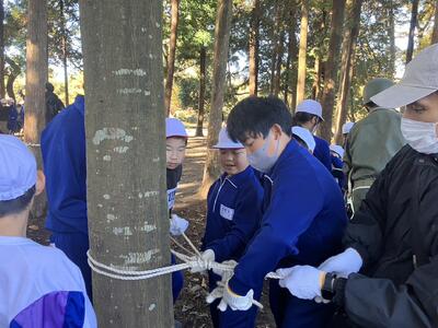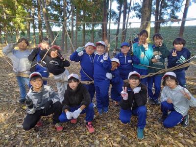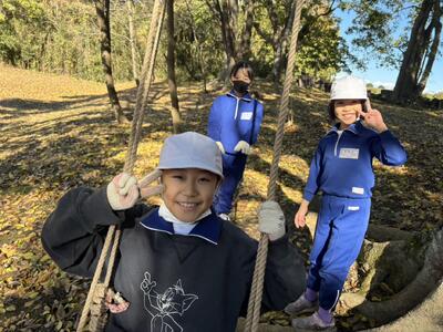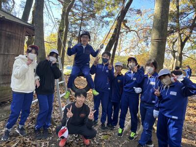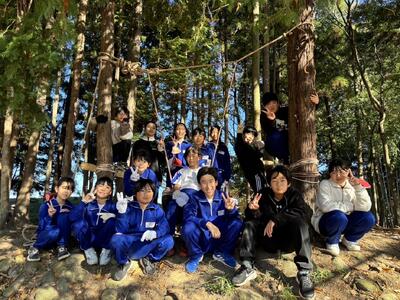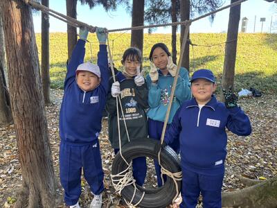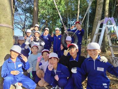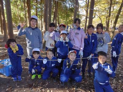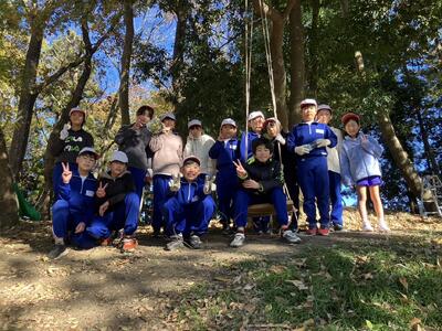 3年生も夜のお泊まりを体験して、朝を迎えました。今日の活動はアスレチック作りとアスレチック遊びです。6年生が3年生の面倒を見ながら、グループで協力、助け合いながら活動しました。