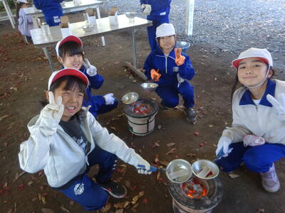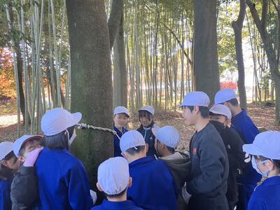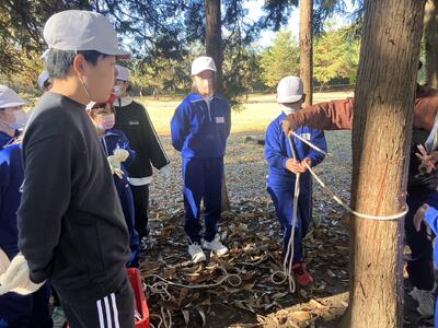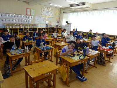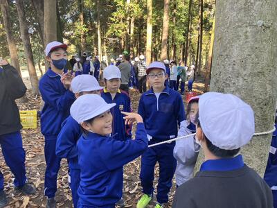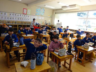 今日から3年生も参加です。6年生に面倒を見てもらいながら、自然教室センターでの体験をしています。ふれあい活動、ネイチャーゲームを行いました。