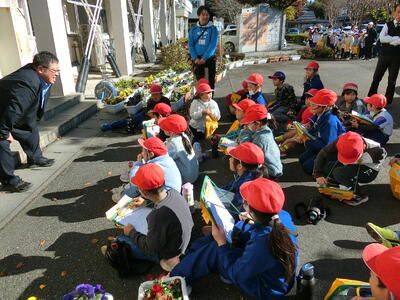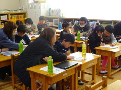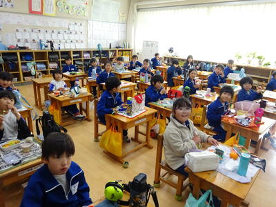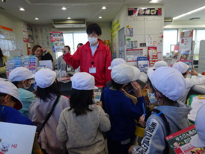 生活科の町たんけんに行ってきました。中村郵便局、中村分館、中村中学校、中駐在所に行き、どんな施設かどんな仕事をしているかなどの話を聞いてきました。保護者ボランティアの方々にもご協力いただき、見守っていただきました。