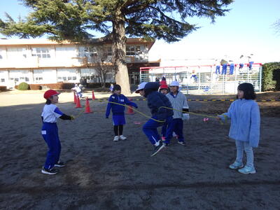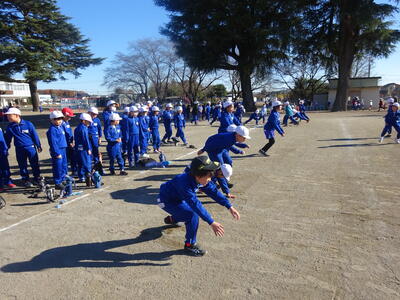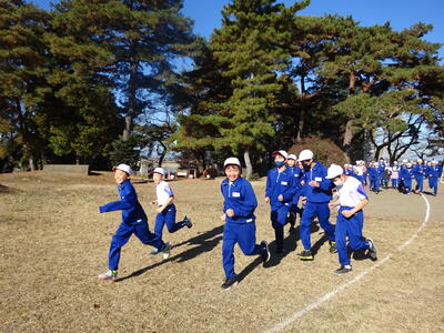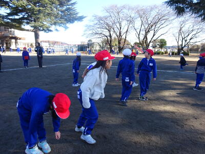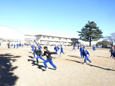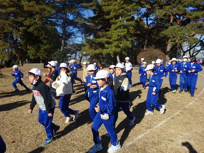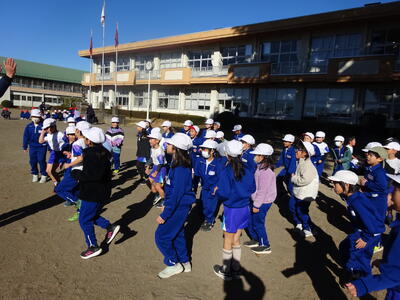 今日は久しぶりの体力つくりでした。1,3,5年生は跳躍力を伸ばす運動を、2,4,6年生はランニングでした。