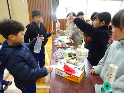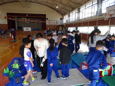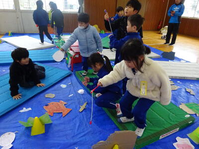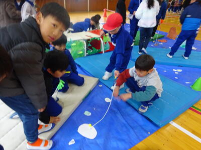 2年生が生活科の学習で、「おもちゃランド」を開き、1年生を招待しました。さかなつりゾーン、カーレースゾーン、楽器ゾーン、紙飛行機ゾーンの4つのグループで、それぞれ工夫したおもちゃで楽しんでもらっていました。