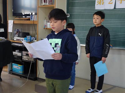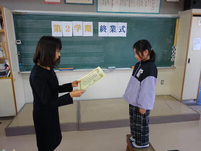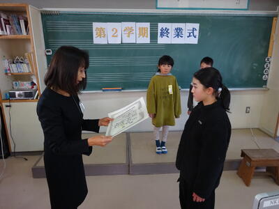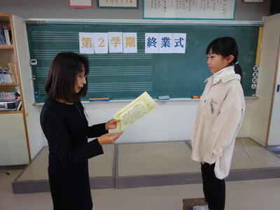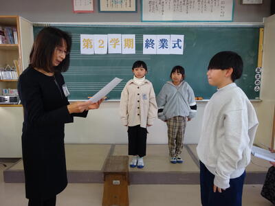 長い2学期も無事終了式を迎えることができました。たくさんの行事があった4か月でしたが、児童の活躍する姿、そして成長する姿がありました。保護者の皆様、地域の皆様には温かく見守っていただきありがとうございました。冬休みも安全に、元気に過ごせることを願っています。