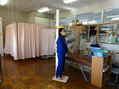 今週から身体計測が始まりました。今日は6年生が身長と体重を測定していました。外は、風が冷たく感じられましたが、元気に遊ぶ児童がたくさんいました。