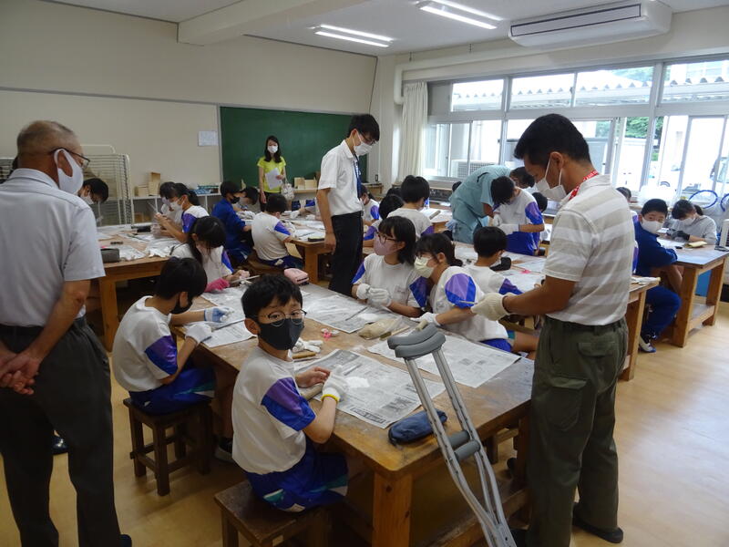 本日は、6-2で勾玉作りがあり、自然教育センターの方にお世話になりました。また、5年生の理科の授業では、科学教育センターの指導主事の方に授業を見ていただき、放課後指導助言をいただきました。