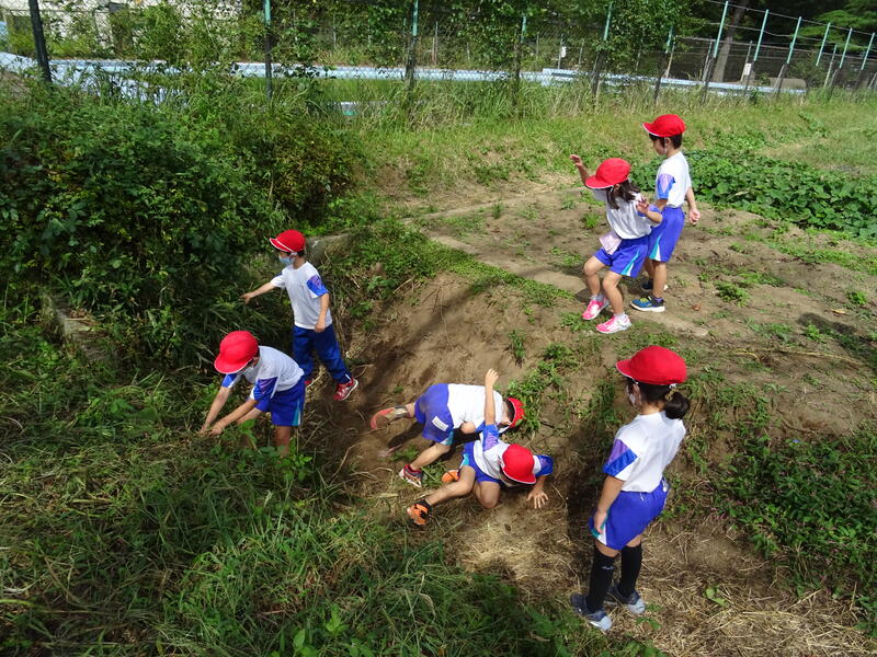 明日で短縮日課が終わり、来週から通常日課になります。今週までは、感染防止の観点から休み時間に遊具で遊ぶことができません。それでも、業間の時間には、多くの子供たちが外へ出て、思い思いに外での遊びを工夫して過ごしていました。低学年は農園付近で虫やカナヘビを探して過ごします。元気な1年生は草を捨てる堀を活用して、真っ黒になって遊んでいました。担任の先生方も外に出て、子供たちを見守ります。15分の休み時間が終わると、一斉に昇降口に向かって3校時に備えていました。