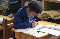 算数では、十の位に繰り下がりのある引き算を学習しています。問題を解きながら、子どもたちからは「面倒だなあ」という声もちらほら聞こえましたが、課題が出されると集中して取り組みました。