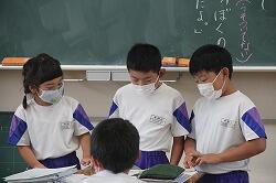 国語では登場人物の気持ちを場面を追って考えていきました。子どもたちも物語をよく読みこんでいて、言葉から、「~じゃないかな」とか、また担任が音読をある場面で止めると「そうだよ。この文だよ。」と意見を交換し合うことで学びを深めていきました。