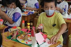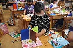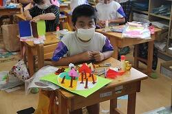 4年の図工は「ゆめのまちへようこそ」を学習しています。本来なら、大きな段ボールを使って、大きな夢の街を作るのですが、「密になる」ため、個人での作業です。遊園地のような街ができてきています。
