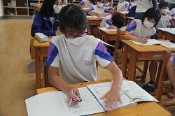 外国語は「1学期に習った表現を使って発表をしよう」を行いました。一人ずつ英語を使い1分以上のスピーチでした。将来の夢、今感じていることなど多岐にわたっての内容で、表現力がアップした発表でした。発表が終わると「Nice!」「Wow」「Great!」「Fantastic!」などの声がかかりました。