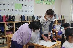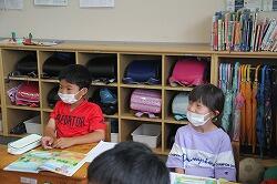 国語では物語文の読み取りを学習しています。今日は、主人公の気持ちを考え、身振り手振りをつけて主人公の会話文を読む学習を行いました。