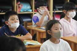 今日から2学期が始まりました。熱中症予防のため、始業式は放送を使って室内で行いました。