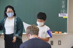 外国語では、各自が自分が行きたい国についての発表会を行いました。今まで学習してきたことのまとめです。行きたい思いを校長、AETに英語で伝えました。発表を見学する児童たちは、真剣に内容を聞き取ろうとしました。緊張感が漲る空間でした。