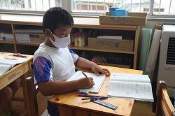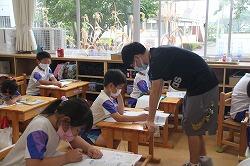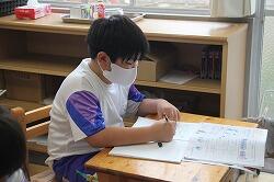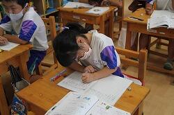 国語ではいよいよ漢字に挑戦です。1学期は仮名の学習をしてきました。漢字の学習に突入してきたことで、成長してきたことを感じます。担任と、一画一画確認しながら書いていきました。