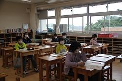 朝は、保健指導、生活指導から始まりました。感染予防のための生活の仕方、挨拶は会釈で、給食について等々。学校生活の決まりを振り返りました。