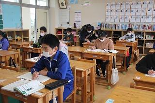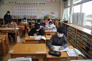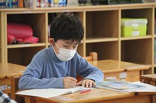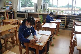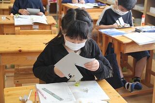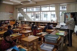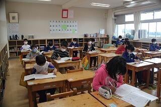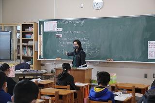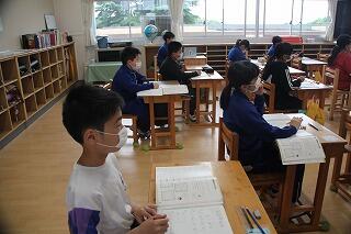 5年生の算数は、4年生の分数の引き算を学習しました。クラスの人数が少ないため、少々緊張気味の様子でしたが、課題に真剣に向き合いました。