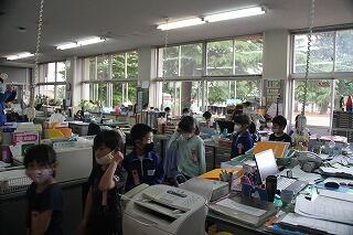 今日はBグループの登校日です。Aグループと同様に学校探検を行いました。特別教室では、いろいろな器具を見るたびに歓声をあげていました。大発見があった瞬間でした。