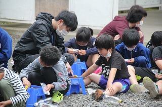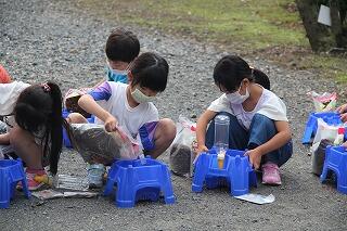 子どもたちからは、ティッシュの量を増やそう、途中途中でティッシュをくべたら、マッチの本数を増やして火力を強くしよう、5年の海浜自然の家で野外炊飯をしたときには空気をあてたような、いろいろな考えがでてきました。各グループで、仕込みをして実験開始です。