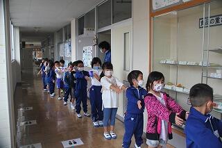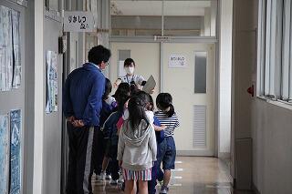 今日はAグループの分散登校です。生活科では、例年、2年生が学校の中を紹介します。しかし、今年はコロナウイルスにより臨時休業となったため、1年生のみで行いました。広い校舎に興味津々でした。