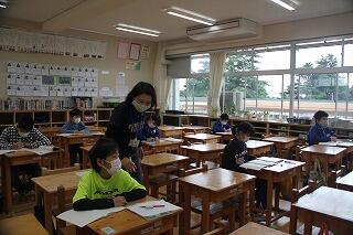 各教室では、授業前に保健指導を行いました。感染防止のためにどんなことに注意をしていったらよいか、学校でどのように生活をしていったらよいかを考えました。