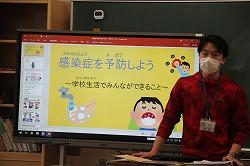 各教室では、授業前に保健指導を行いました。感染防止のためにどんなことに注意をしていったらよいか、学校でどのように生活をしていったらよいかを考えました。