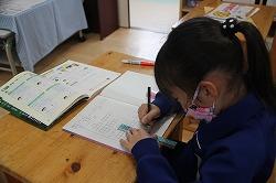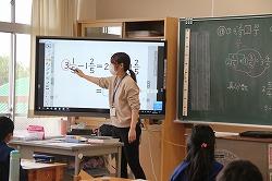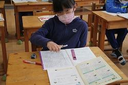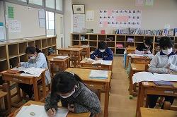 5年生の算数は、4年生の分数の引き算を学習しました。クラスの人数が少ないため、少々緊張気味の様子でしたが、課題に真剣に向き合いました。