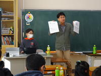 アメリカのグランドーラとオンラインで結び、6年生が異文化について学びました。英語での説明を聞いた後、質問コーナーでも、代表児童が英語で質問をしました。緊張していたようですが、質問が通じた喜びも味わうことができたようです。