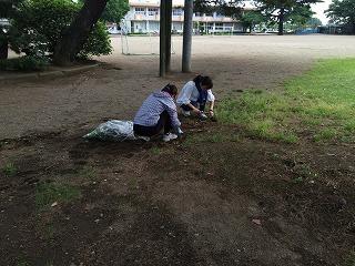 中庭農園の除草(5年生) プール前農園の除草(6年生)