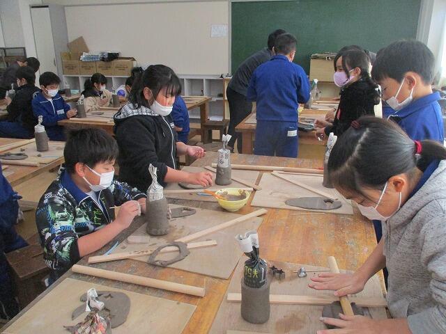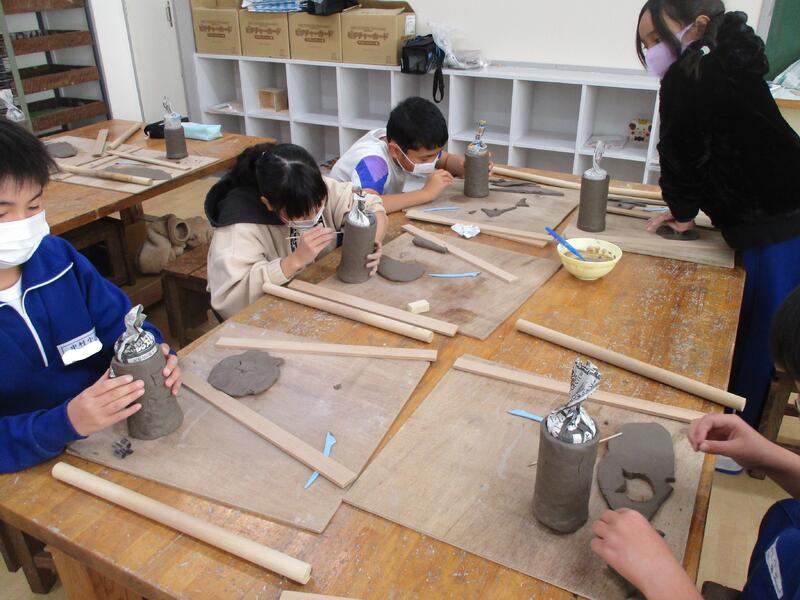 本日は、4年生1クラスで自然教育センターの方を講師に迎え、陶芸教室を行いました。出来上がりが楽しみです。