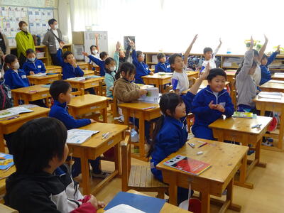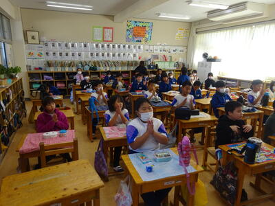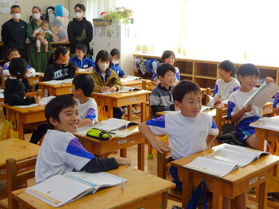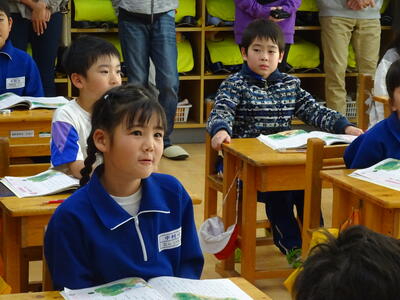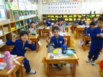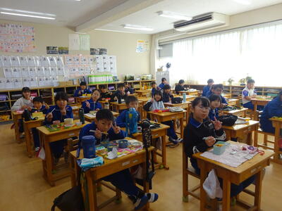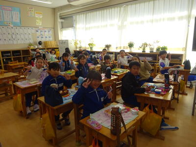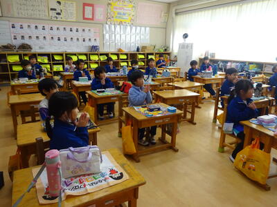 寒さもやわらぎ日中は暖かくなりました。昼休みには、見守りボランティアの方々3人に来ていただき、子どもたちの様子を見ていました。