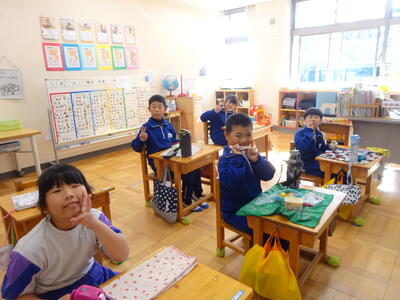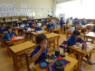 いつも楽しみにしているお弁当の日。感謝のあいさつをして「いただきます」をしました。すきなものをほおばり、嬉しそうに食べていました。