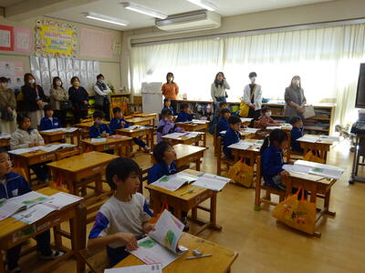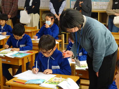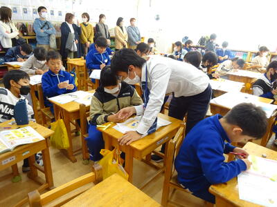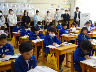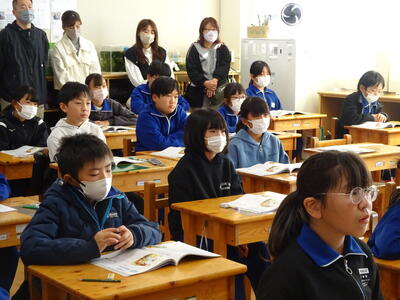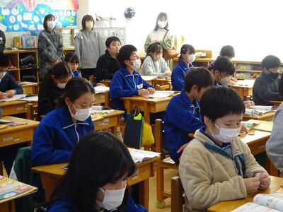 今日は、2年生が町探検で中村中学校と中村改善センターに見学に行きました。ボランティアの保護者の方やマイチャレの中学生も一緒に付き添っていっていただきました。
