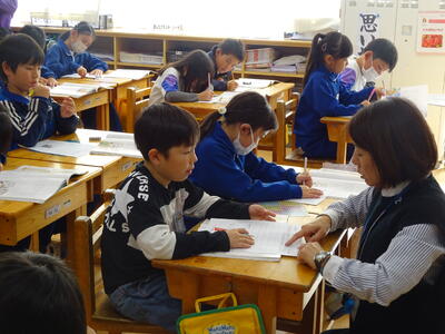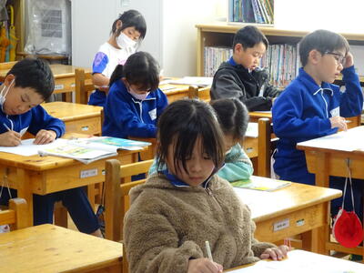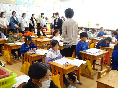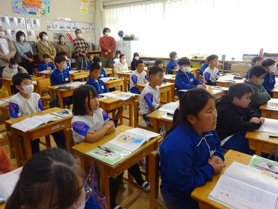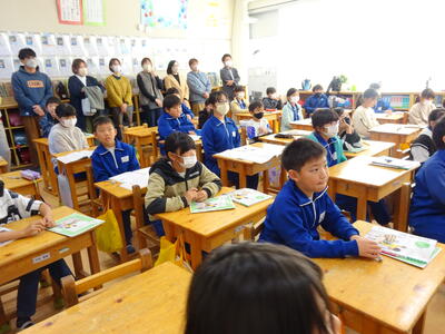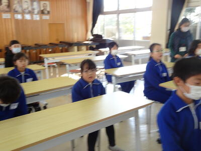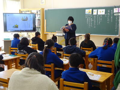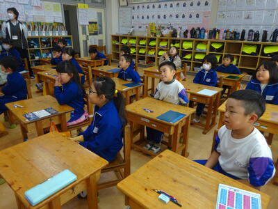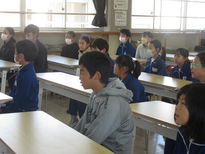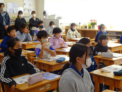 6年生が地域の方(地域ボランティア)から町づくりについての話を聞きました。真岡市がどのように町づくりを進めているか、丁寧にわかりやすく説明していただきました。メモをとりながら熱心に話を聞き、最後の振り返りでは、感想などを発表することができました。