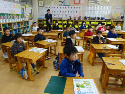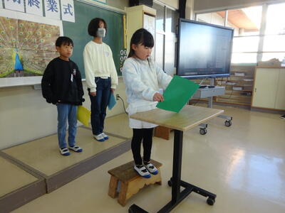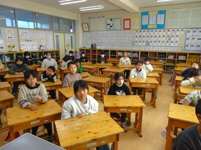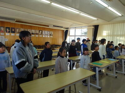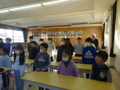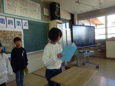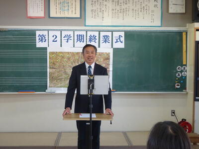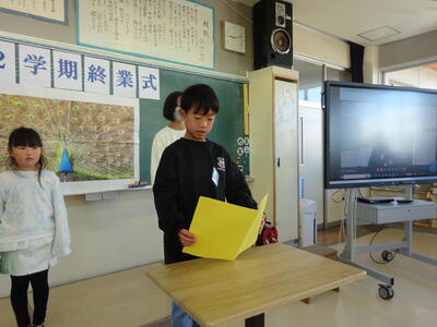 今日は2学期最後の登校です。終業式が行われました。代表児童の作文発表、校歌斉唱などがありました。明日から、元気に冬休みが過ごせるとよう願っています。