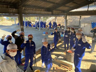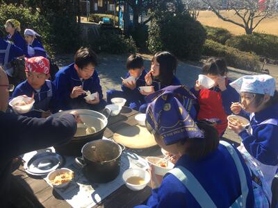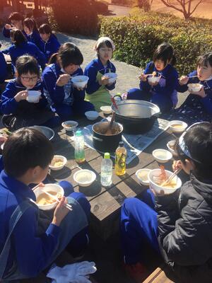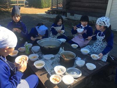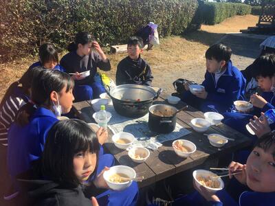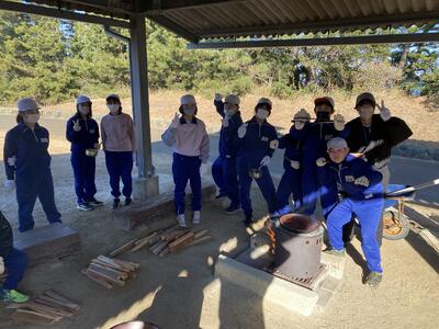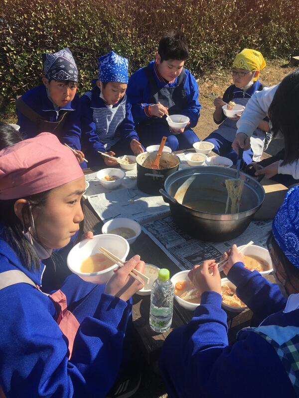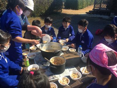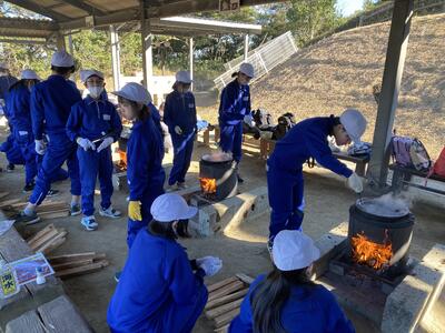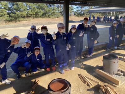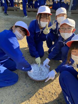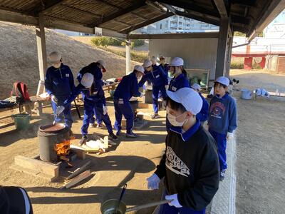 5年生の午後の活動は塩づくりです。海から海水を汲み上げて土鍋で煮詰めると、ミネラルたっぷりの塩が出来上がりました。