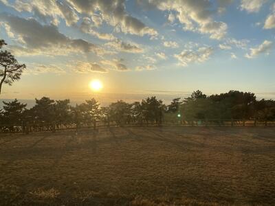 今日も良い天気です。日の出前、展望デッキで写真を撮って、朝食です。