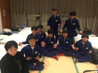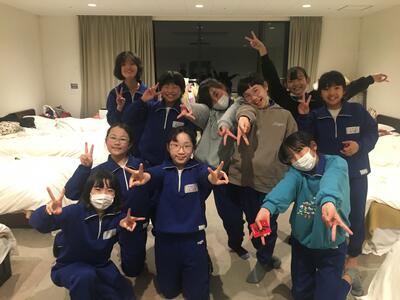 夕食後の部屋でリラックスタイムです。男子も女子もそれぞれでした。