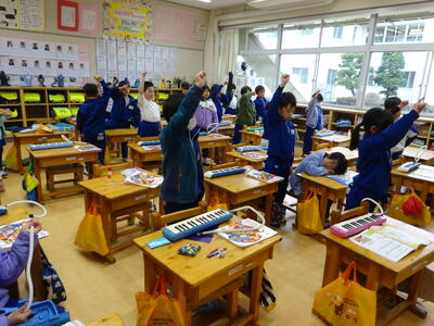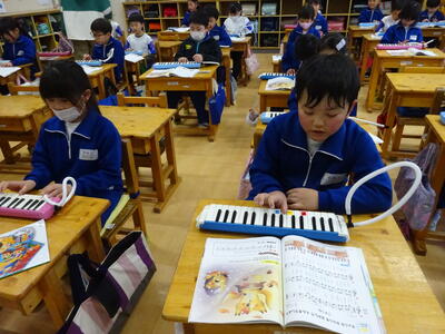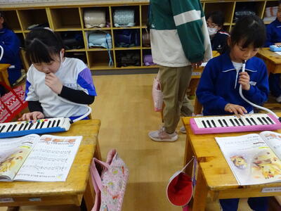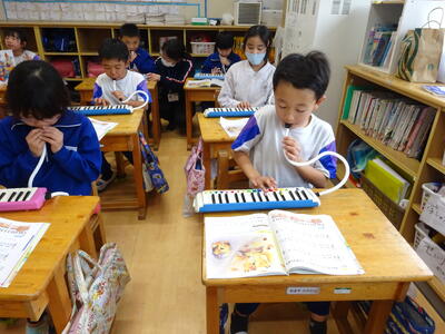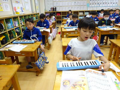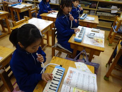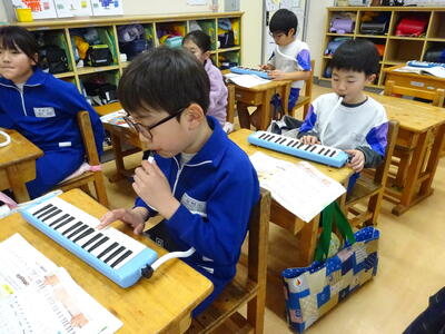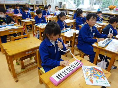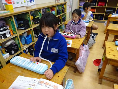 2年生は音楽で、鍵盤ハーモニカを練習していました。コロナ禍では、なかなか取り組めなかった鍵盤ハーモニカでしたが、ゆっくり丁寧に指使いに気を付けて演奏していました。みんな真剣そのものです。